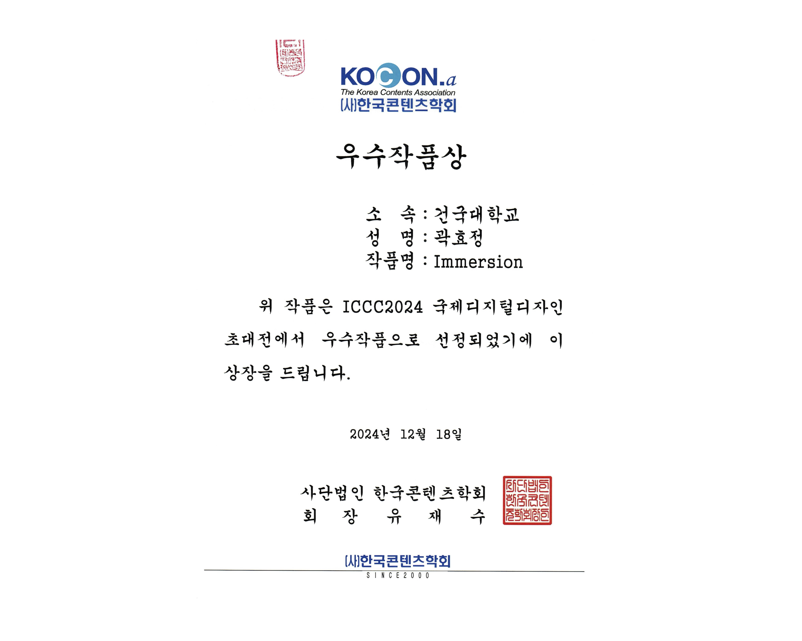 [곽효정 학생] ICCC 2024 International Digital Design Invitation Exhibition – 우수작품상 수상